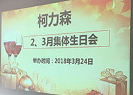 柯力森舉辦2月和3月員工集體生日會 繼1月份公司成功舉辦員工集體生日會,2月和3月的壽星們在3月24日歡聚一堂,共同慶生。公司還為壽星們準備了精美的禮品及生日蛋糕,同事們也紛紛送上溫馨真摯的祝愿,整個生日會充滿了歡樂、喜悅與幸福!! 本次生日會在英德會場。壽星分別有:朱光耀,...