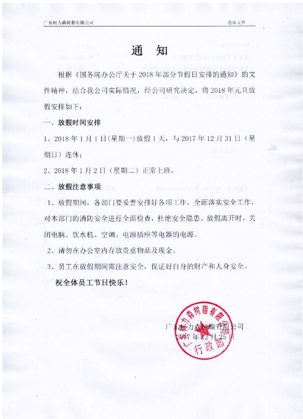 柯力森元旦放假通知