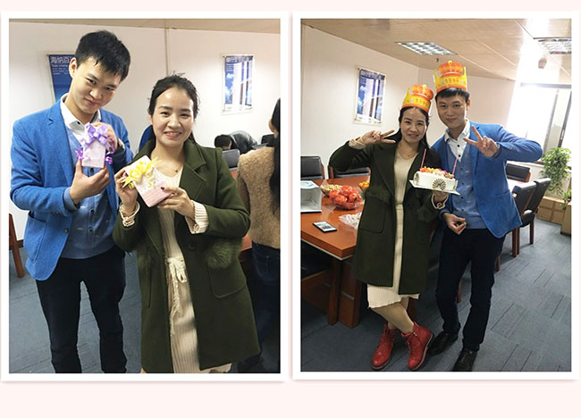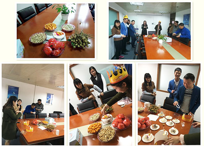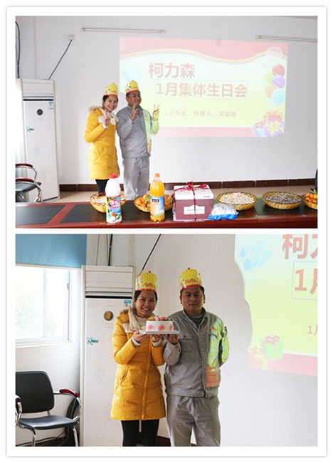 公司集體生日會分兩個會場----順德會場、英德會場。1月順德會場的壽星有:郭艷麗、王艷鵬;1月英德會場的壽星有:黃麗梅、鐘履東。